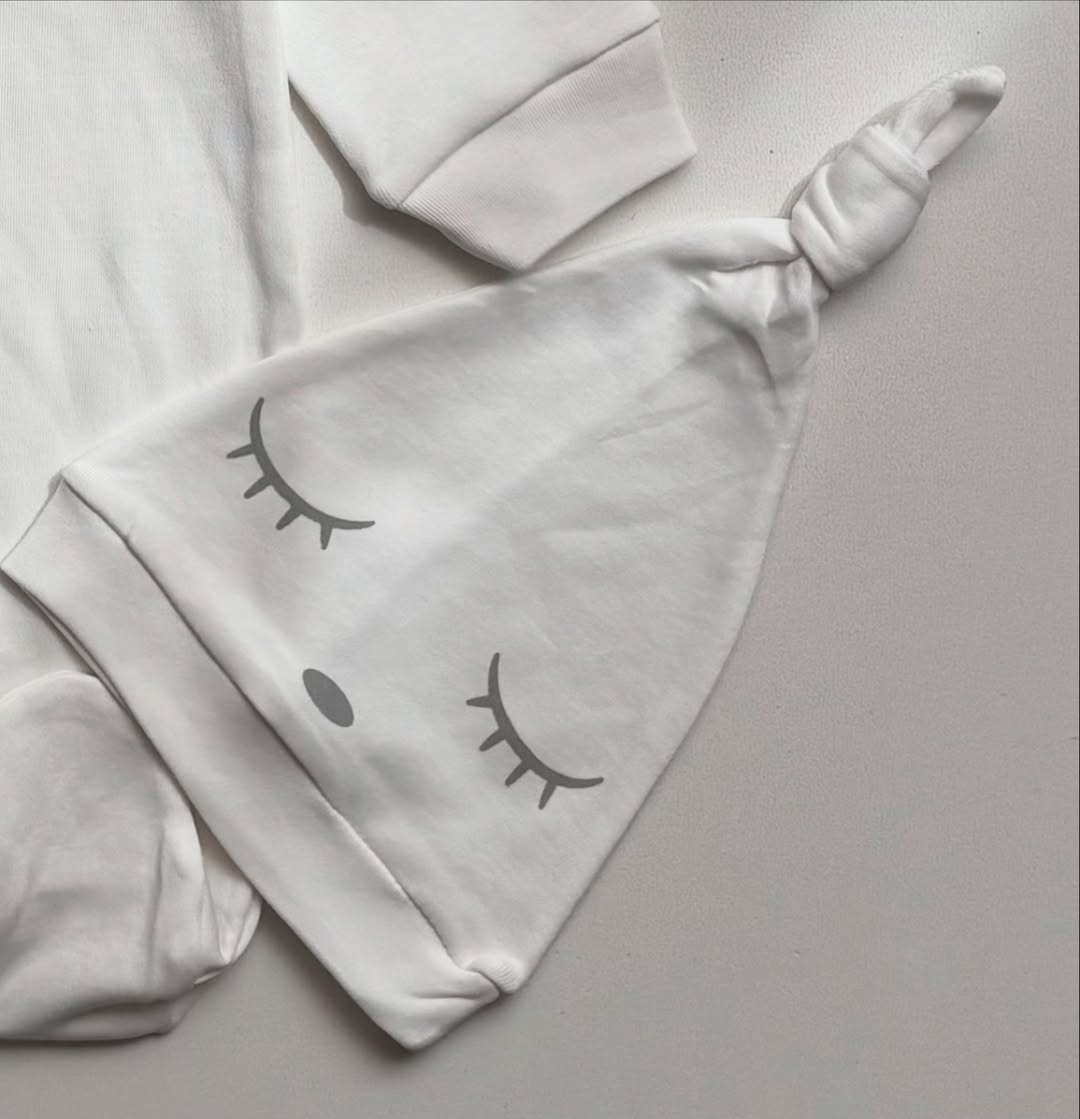 ست سرهمی وکلاه ترک برند Murat baby کیفیت خیلیییی عالییی و لطیفی داره کاملا سازگار با پوست حساس نوزاده ،قسمت سرشانه و فاق کاملا دکمه داره و تعویض پوشک و عوض کردن لباس رو براتون راحت کرده . . و یه کلاه خیبی زیبا که بالاش گره ای هست