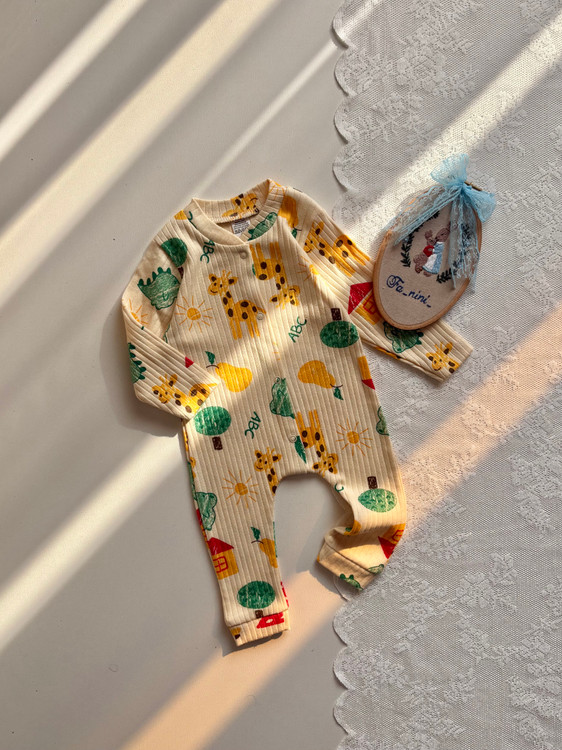 سایز ۱ماه:سرشانه تافاق:۳۱ پهنا:۲۲ قدکامل:۴۴ سایز۳ماه:سرشانه تافاق:۳۳ پهنا:۲۳ قدکامل:۴۶ سایز۶ماه:سرشانه تافاق:۳۴ پهنا:۲۴ قدکامل:۴۹