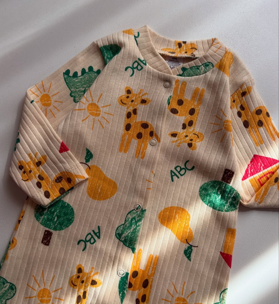 سایز ۱ماه:سرشانه تافاق:۳۱ پهنا:۲۲ قدکامل:۴۴ سایز۳ماه:سرشانه تافاق:۳۳ پهنا:۲۳ قدکامل:۴۶ سایز۶ماه:سرشانه تافاق:۳۴ پهنا:۲۴ قدکامل:۴۹