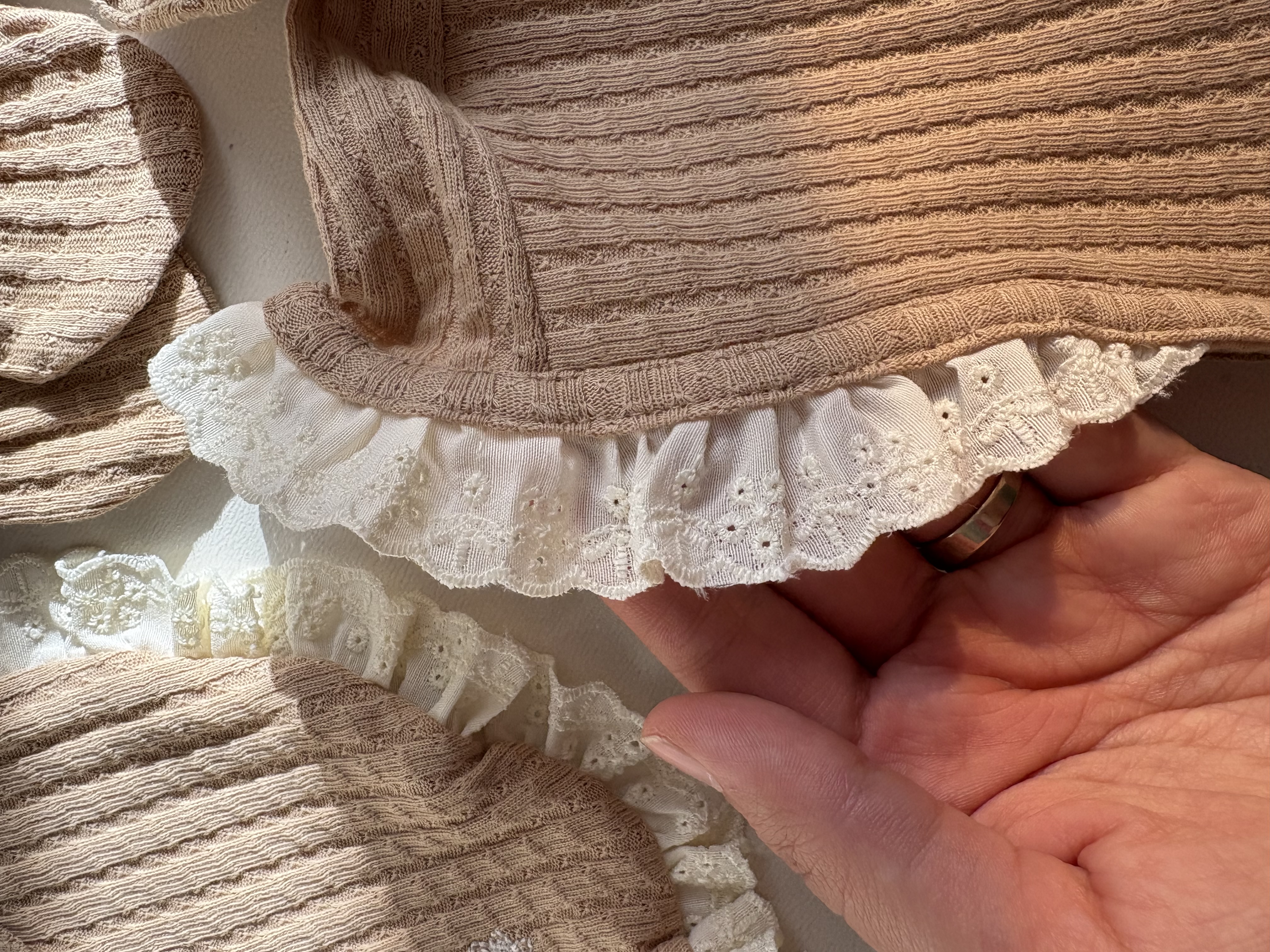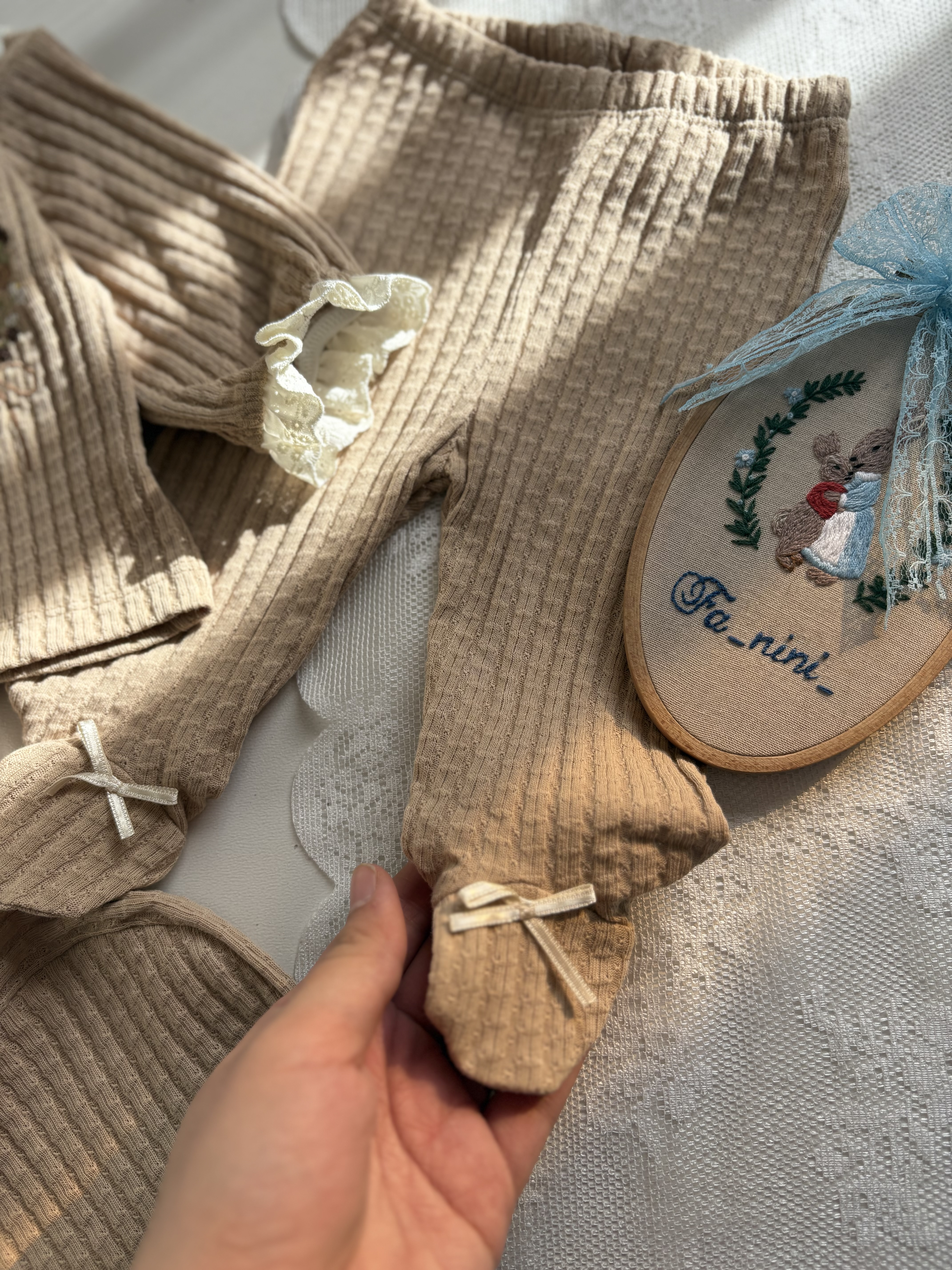 ست پنج تکه ترک 🇹🇷🇹🇷 کیفیت و دوخت عالییی و زیبا مناسب پوست حساس نوزاد ،سایز صفر تا سه ماهگی شامل پنجتکه ی کاربردی (بلوزمانتویی ،شلوار جورابدار،کلاه ،دستکش و پیشبند)