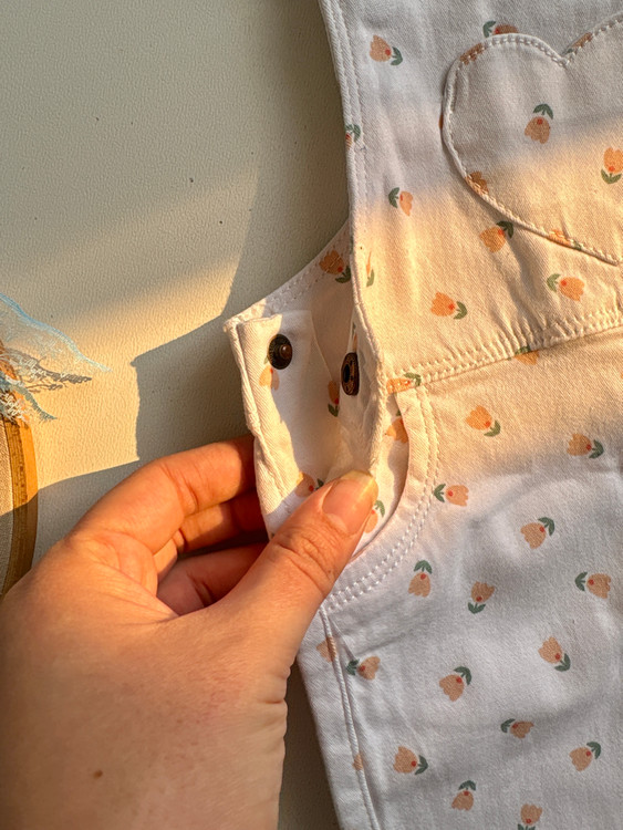 بند سرشانه دکمه تنظیم داره و اندازه ها از دکمه اول گرفته شدن(همشون ۲سانت بلند تر هم میشن )